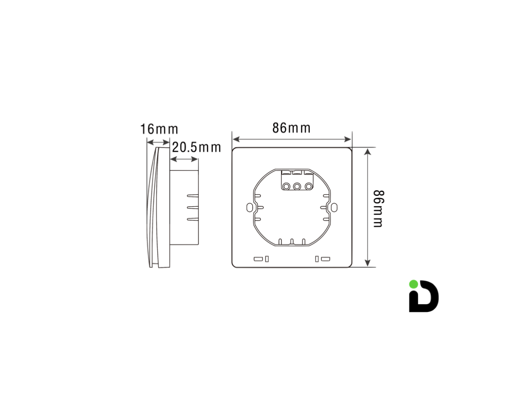 The Dimi Drive Flat receiver is designed to replace traditional in-wall light switches while maintaining a modern aesthetic. Installed directly into a standard electrical back box, it acts as the essential link between your battery-free Dimi keypads and your lighting or connected devices.